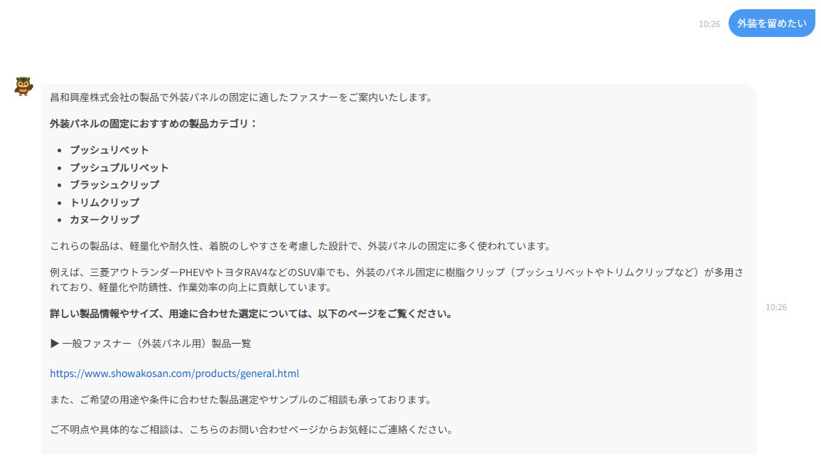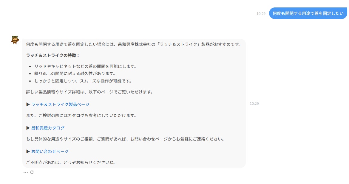 より良いサービスの提供のため、AIによるチャットボットを実装しました。